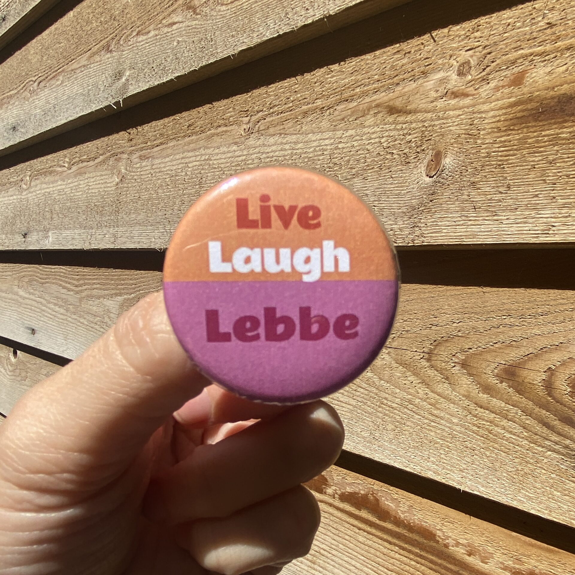 Badge på 2.5 cm med teksten “Live Laugh Lebbe”
